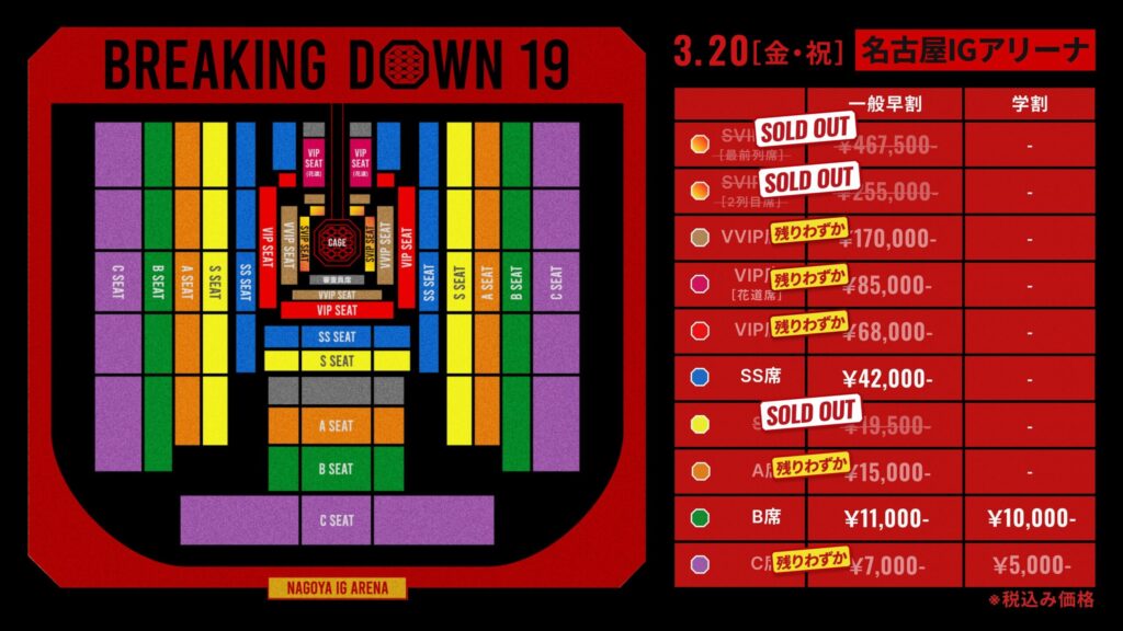 BREAKING DOWN 19 名古屋大会のシート割