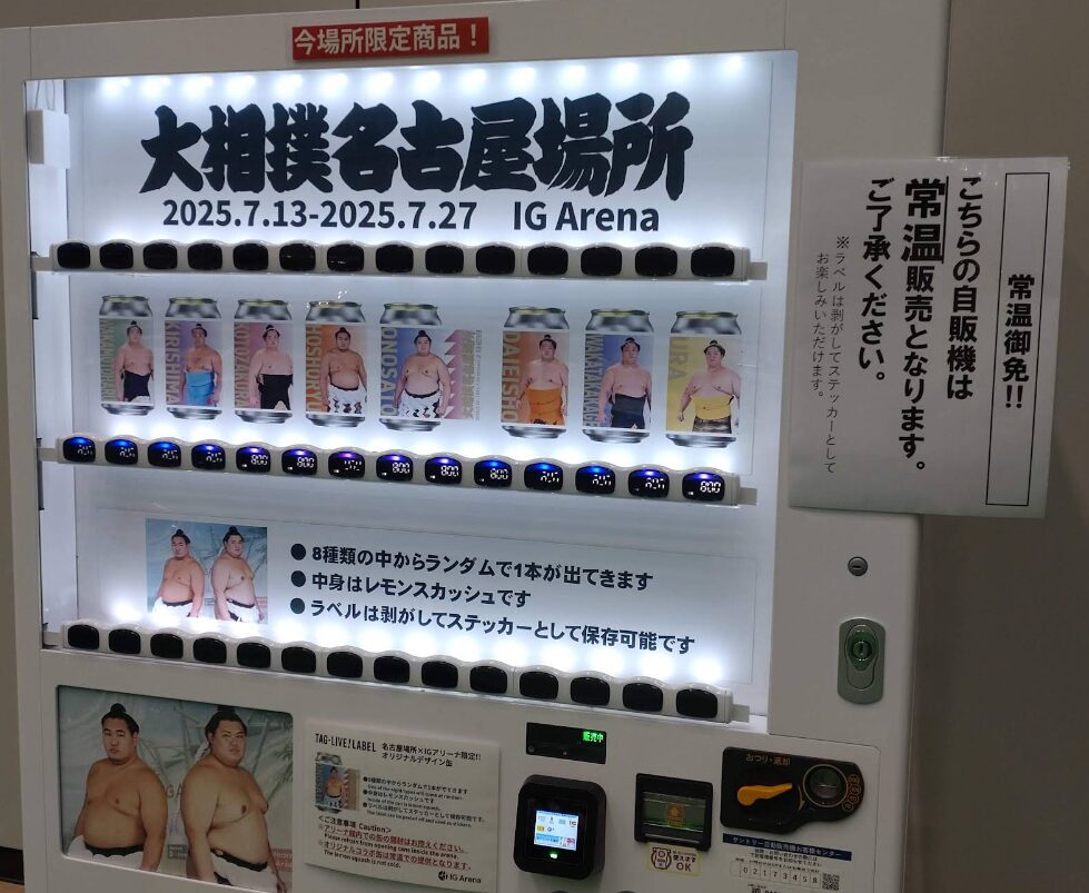 場内には限定缶ラベル飲料も自動販売されています。