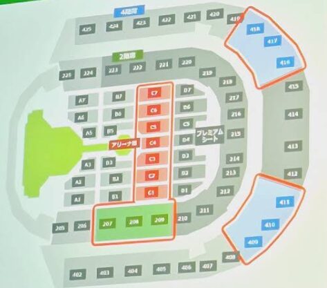 2~4階は固定席になっていて、ブロック内で座席番号がふられています。