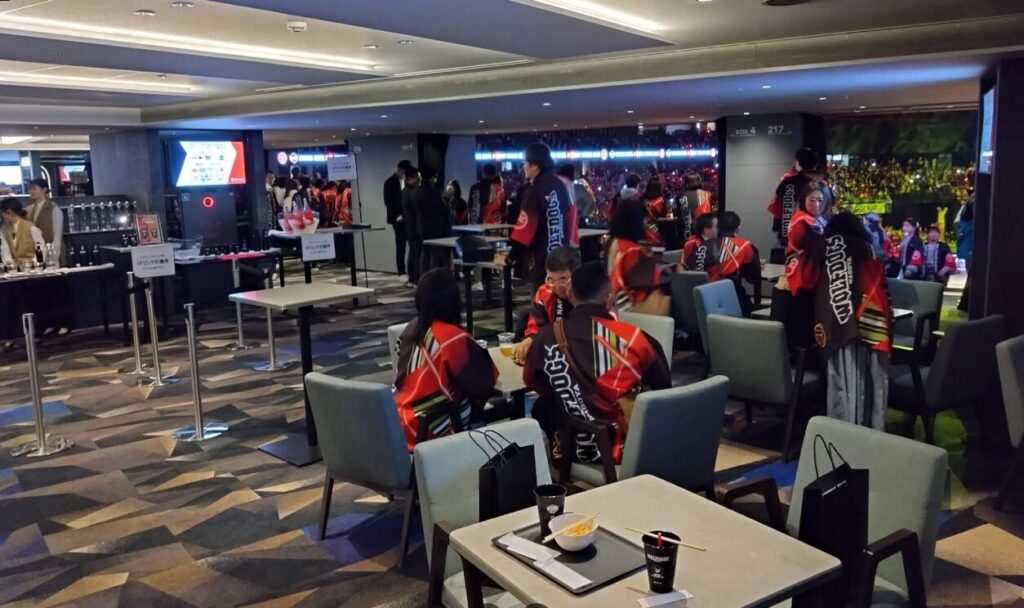 座席にはドリンクホルダーが付いており、観戦しながら座席での飲食も可能です。