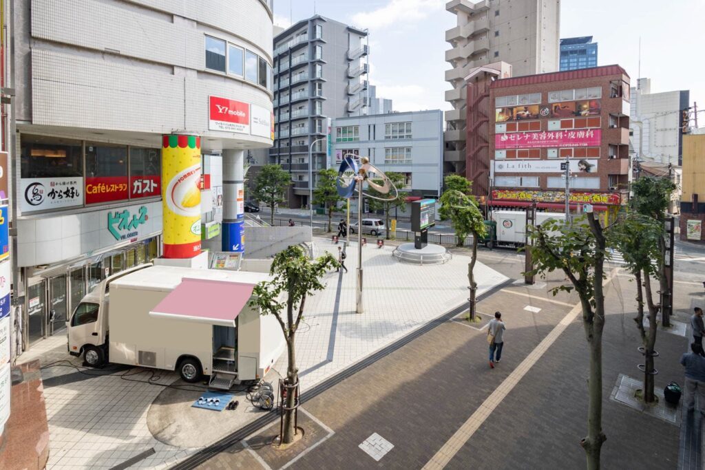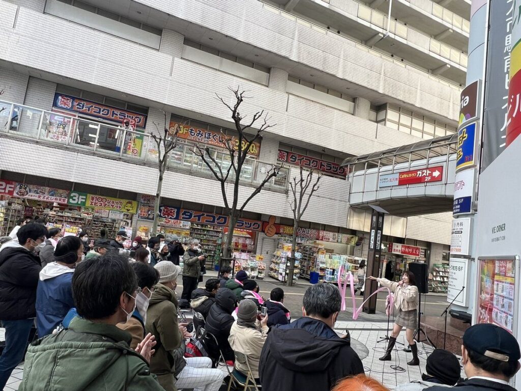 正面入口の左側の茶色い大理石ベンチの前あたりがステージになります。店舗出入口付近のため、動員100人程度までのソロライブイベントやワークショップなどが多いようです。