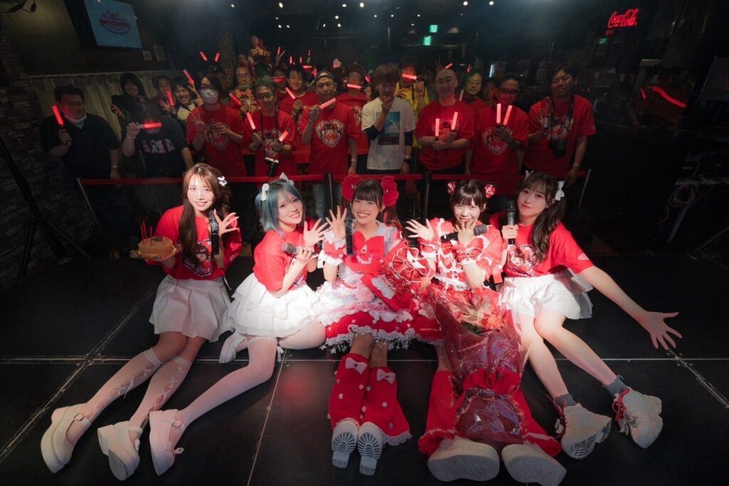 換気が悪いのに声出しありでやや不評ぎみ。ステージの高さは60cmで、床はフラット、サイドにテーブルがあり荷物が置けます。後ろ2列に仮設イスを置くスタイルにもでき、推し以外の時は休めて良いです。