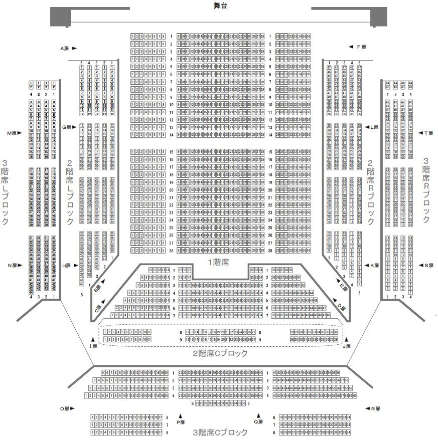 公演中は真っ暗で座席番号が見えませんので、各階ロビーに貼られている座席表で位置をしっかり確認してから入るほうがスムーズです。開演してしまうとトイレへ行く出口もわからなくなります。