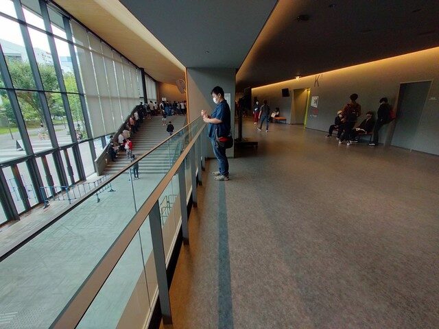 3,000人が特典会に整列できるほど広々としたホワイエと階段、広すぎて最後尾がわかりにくいです。