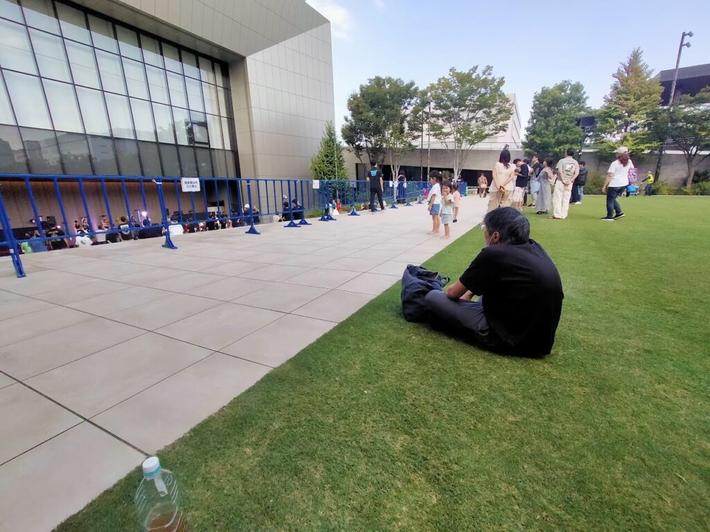 屋外ステージとほぼ同じ場所で、南側にスクリーンを設置して、芝生の傾斜を利用した座席で、全員座っていれば視界をさえぎる物はほとんどありません。後方だと建物の反響で聞き取りにくさがあるかもしれません。